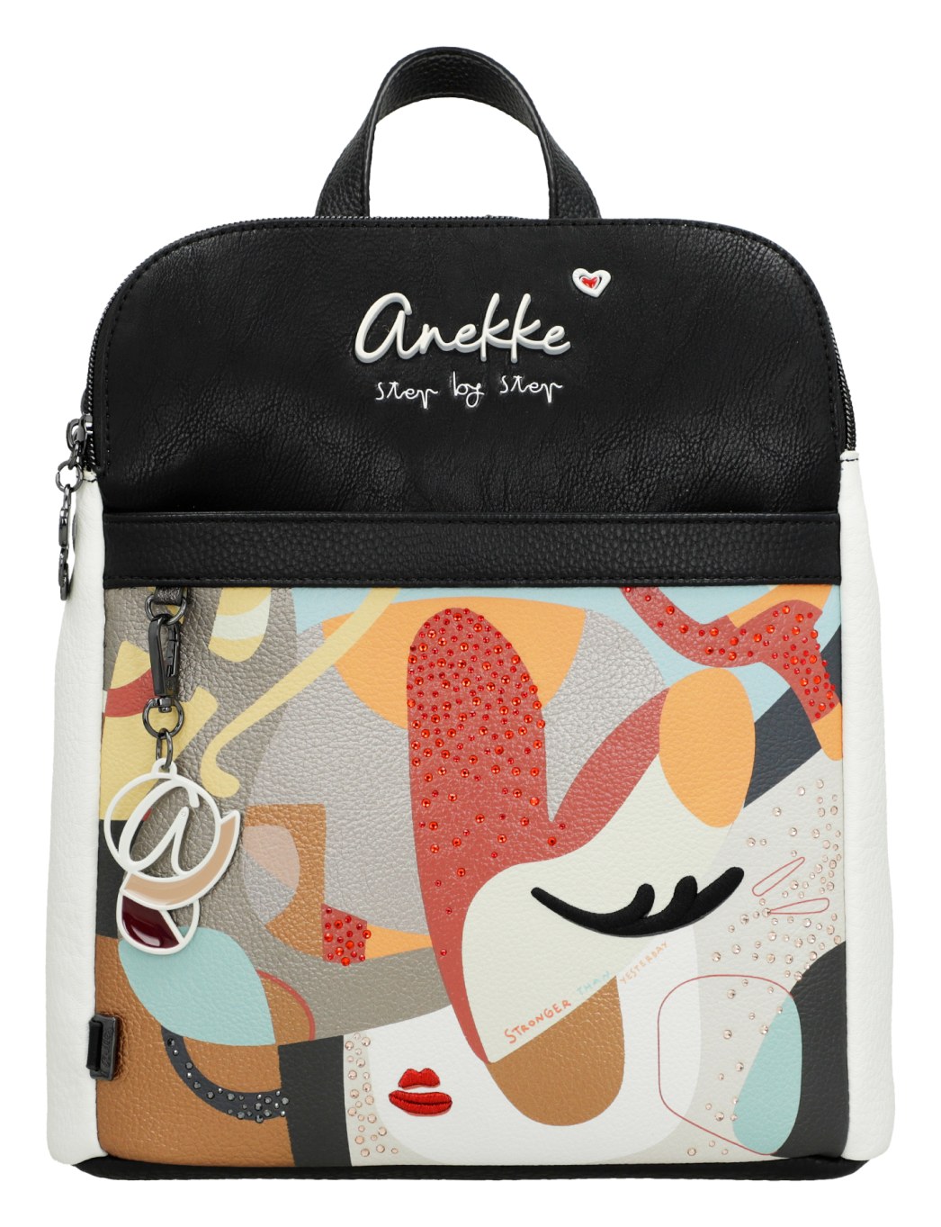 Elegantní batoh má jedno ucho do ruky a nastavitelné popruhy na záda. Na přední i zadní straně jsou kapsy na zip. Batoh má dvě samostatné komory, obě dvě se zapínáním na zip. Uvnitř je kapsa na zip a dvě otevřené kapsičky. Batoh je balený v ochranném obalu.