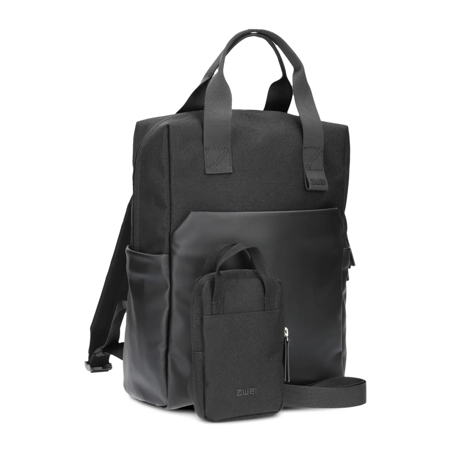 Batoh má zapínání na zip. Uvnitř batohu je kapsa na notebook o rozměrech max. 30 x 21 cm (velikost displeje cca 13"). Uvnitř batohu jsou dále dvě otevřené kapsy a kapsa na zip. K batohu je samostatná etue o velikosti 10 x 16 cm se zapínáním na zip. Etue lze použít např. jako pouzdro na mobil. Etui lze nosit uvnitř batohu nebo ji lze zacvaknout do jednoho z poutek na ramenním popruhu, příp. nosit samostatně. U batohu je také dlouhá šňůra na klíče. Batoh je perfektní volbou pro nošení do města - má ideální velikost, není příliš široký a dobře sedí na zádech. Novinka v kolekci ZWEI!