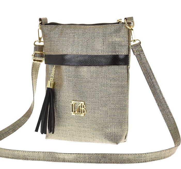 Kabelka má dlouhý, nastavitelný popruh přes rameno a lze ji tak nosit jako crossbody. Kabelka má na přední i zadní straně kapsy na zip. Kabelka má zapínání na zip. Uvnitř kabelky je černá podšívka, kapsa na zip a otevřená kapsa na mobil. Kovové komponenty mají zlatou barvu. Kabelka je velmi lehká.