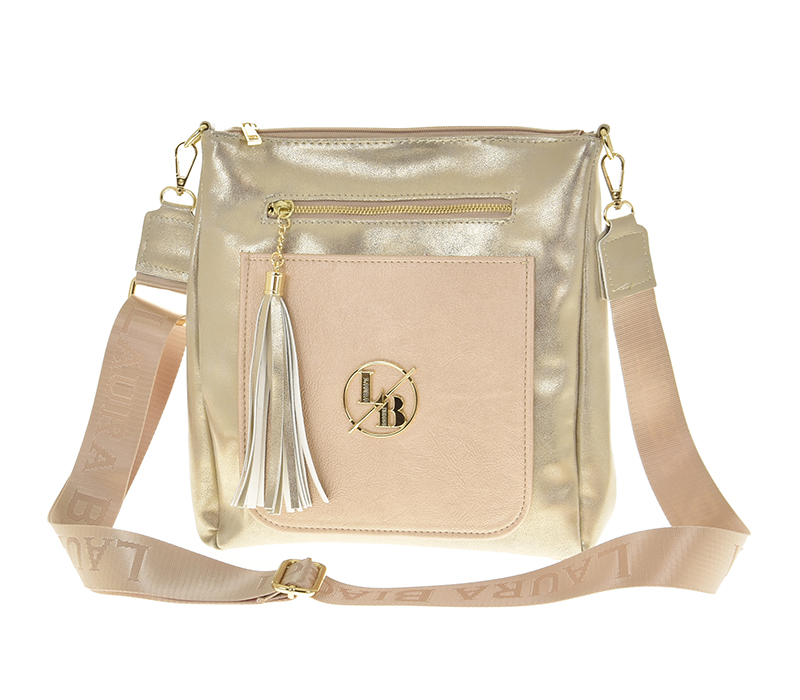 Rozměry: délka 27 cm, šířka 8 cm, výška 27 cm Barva: zlatá Materiál: 100% polyuretan, podšívka 100% PE