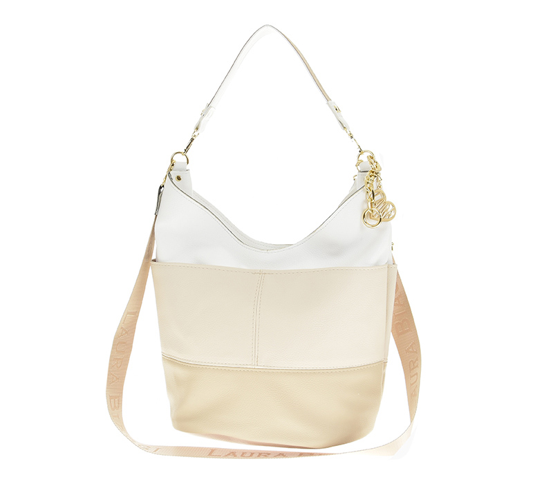 Rozměry: délka 37 cm, šířka 19,5 cm, výška 38 cm Barva: béžová / bílá Materiál: 100% polyuretan, podšívka 100% PE
