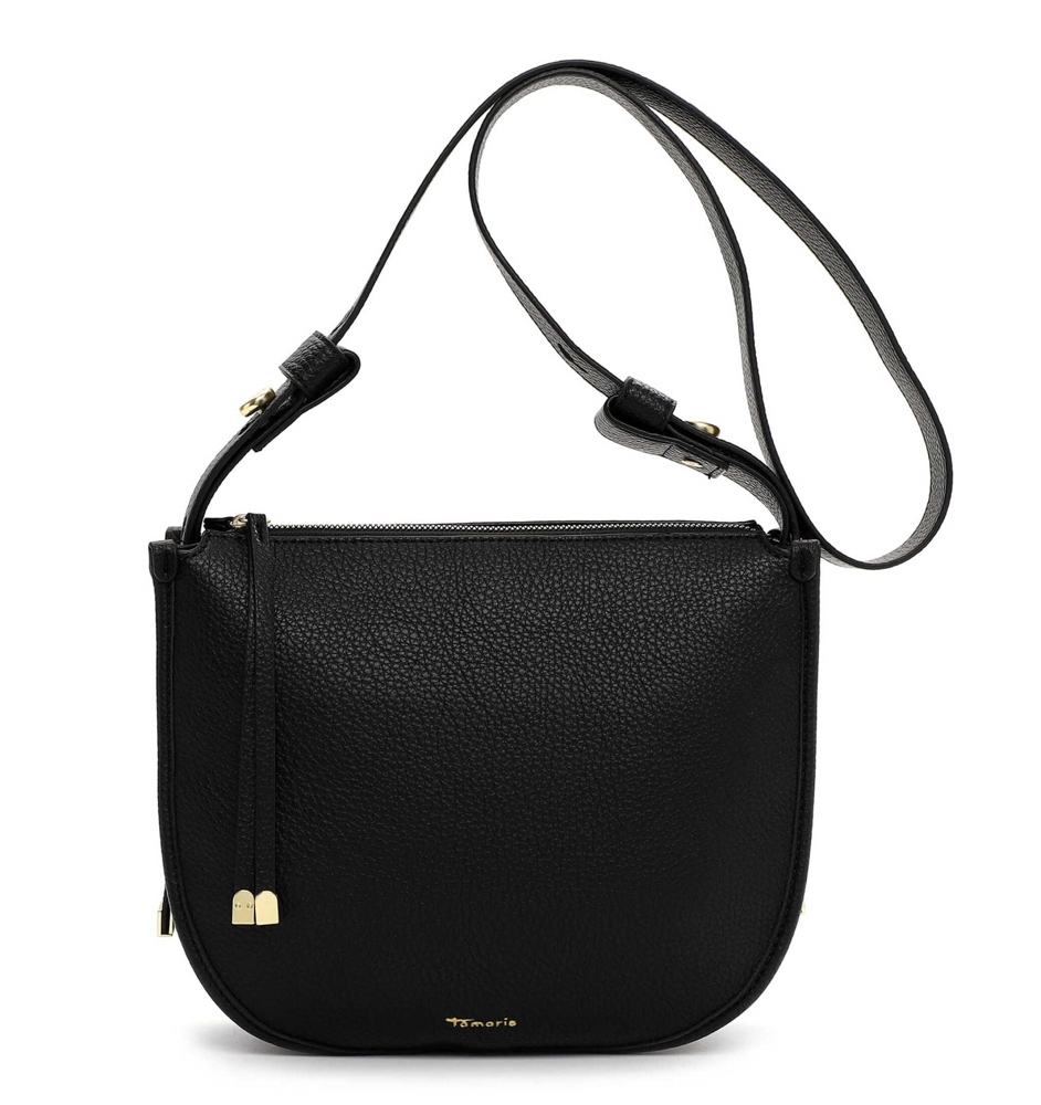 Kabelka má dlouhý a nastavitelný popruh přes rameno a lze ji tak nosit šikmo přes rameno jako crossbody. Na zadní straně je kapsa na zip. Kabelka má zapínání na zip. Uvnitř kabelky je pevná podšívka, kapsa na zip a otevřená kapsa. Kovové komponenty mají světle zlatou barvu. Kabelka má pevný tvar. Na přední straně je logo Tamaris.