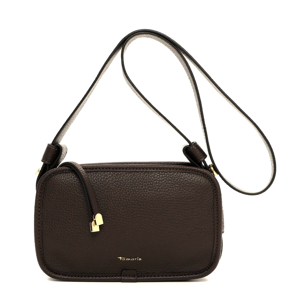 Kabelka má dlouhý a nastavitelný popruh přes rameno. Kabelku tak lze nosit šikmo přes rameno jako crossbody. Na zadní straně je kapsa na zip. Kabelka má zapínání na zip. Uvnitř kabelky je pevná podšívka, kapsa na zip a otevřená kapsa. Kovové komponenty mají světle zlatou barvu. Kabelka má pevný tvar. Na přední straně je logo Tamaris.